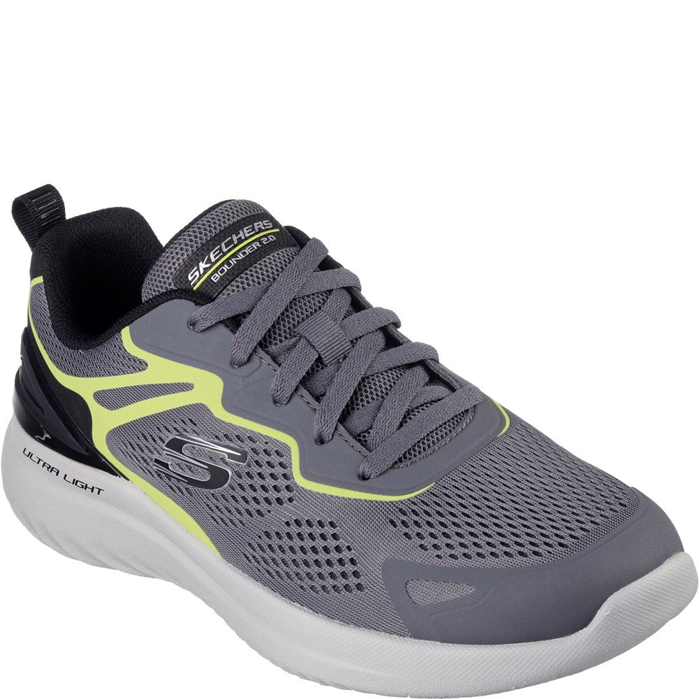 Prepare for all adventures wearing Skechers Bounder 2.0. This lace-up features a mesh upper with Air-Cooled Memory Foam and Machine Washable.