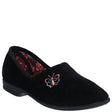 Women's traditional slipper with classy embroidered butterfly. A luxury soft microfibre fleece velour upper gloves the feet, whilst the floral textile lining is soft on toes.