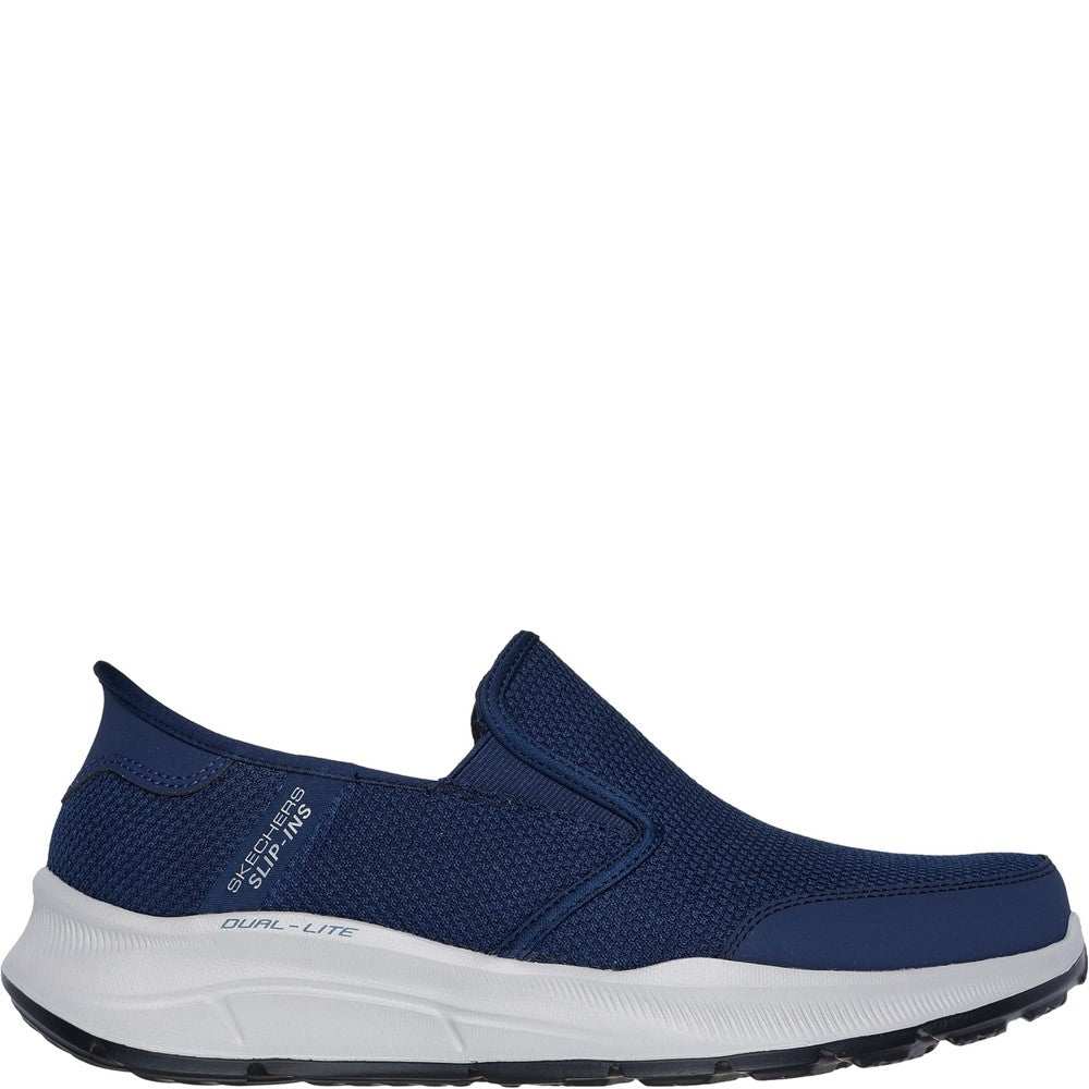 Simply step in and go wearing Skechers Hands Free Slip-ins Relaxed Fit: Equalizer 5.0 - Drayze. Designed with our exclusive Heel Pillow. This laceless style features a knitted upper with a cushioned Air-Cooled Memory Foam comfort insole.