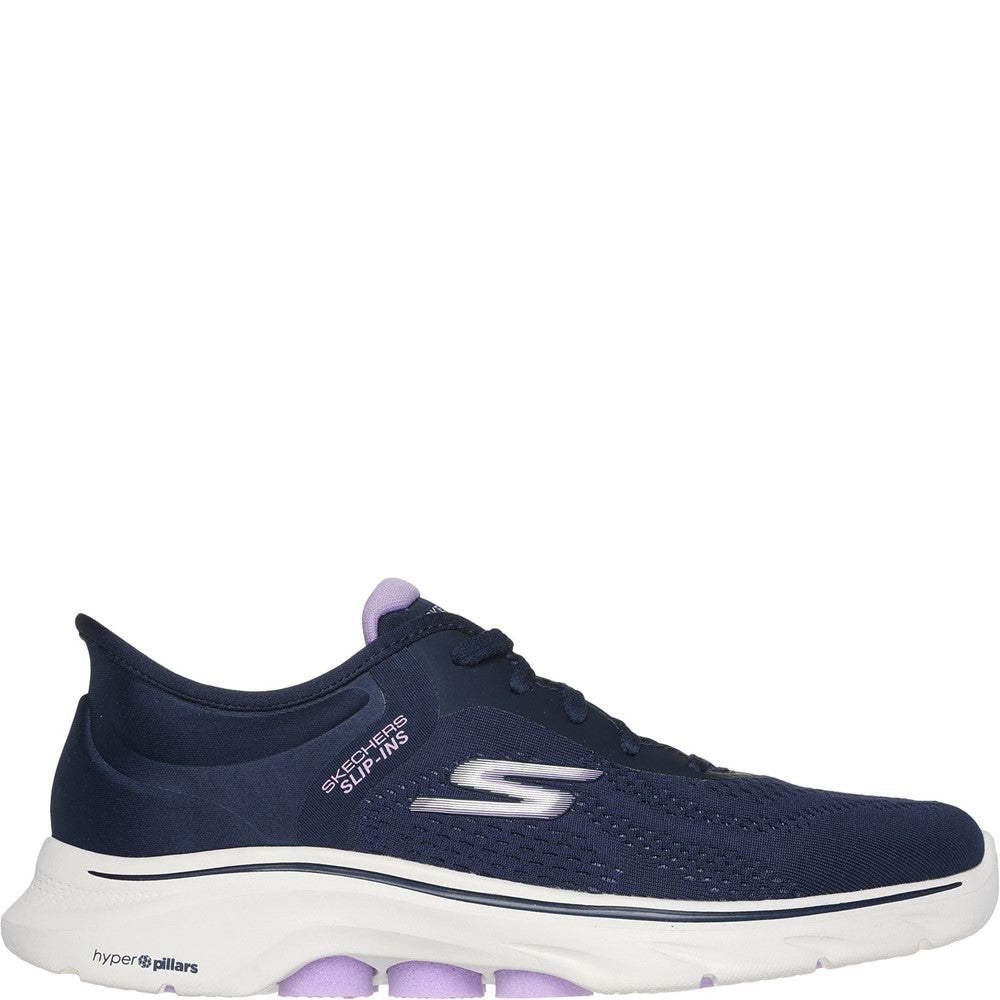 Walk in easy-wearing comfort with Skechers Hands Free Slip-ins: GO WALK 7 Valin. Designed with our exclusive Heel Pillow, this hands-free walking slip-on features an engineered mesh upper with a laced front and an Air-Cooled Memory Foam insole