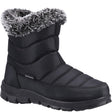Fleece lined hybrid snow boot with water resistant rubber galosh and side zip for easy use.