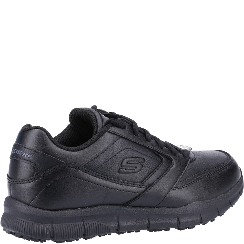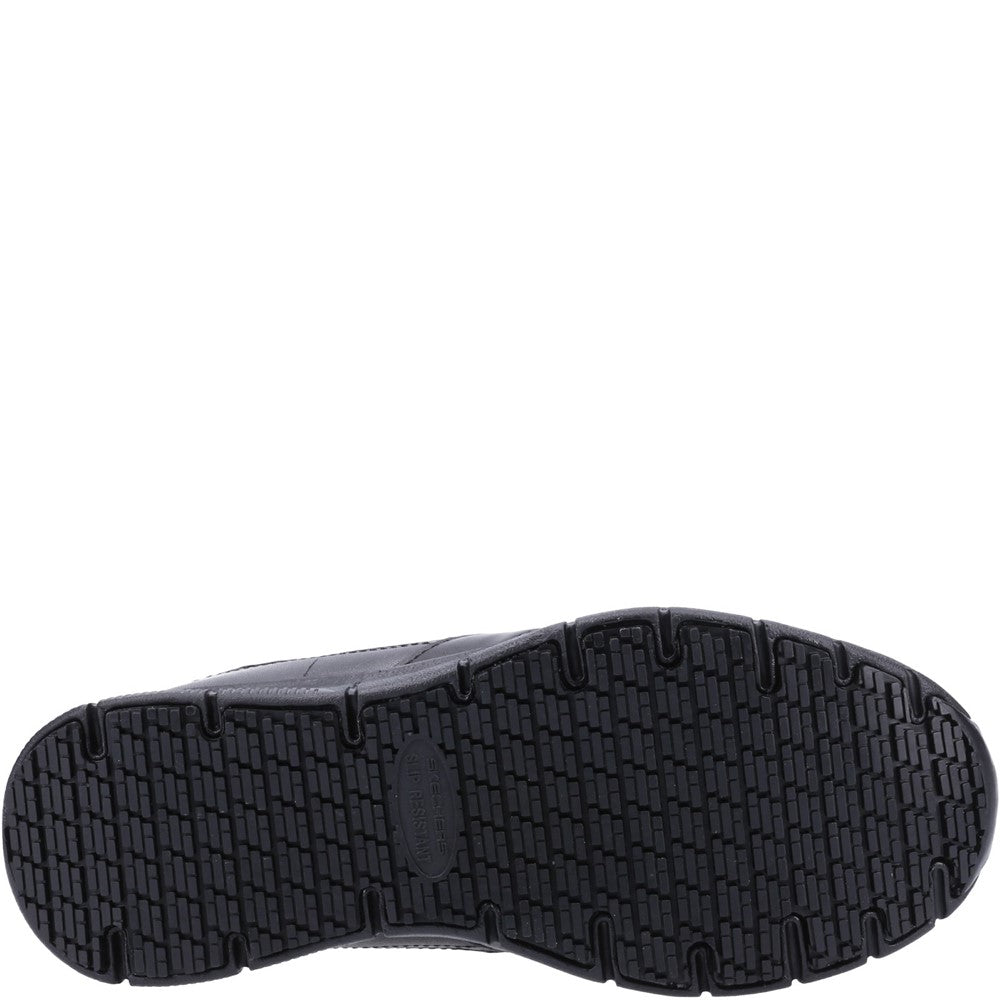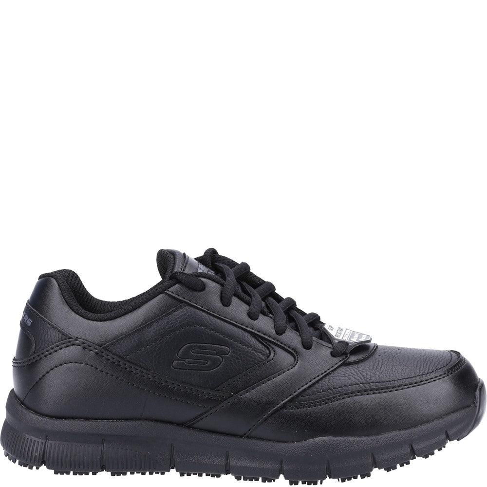 Ensure your comfort, safety and good looking style wearing the SKECHERS Work Relaxed Fit: Nampa - Wyola SR shoe. Leather-textured synthetic upper in a lace up sporty casual comfort work slip resistant sneaker with stitching accents and Memory Foam