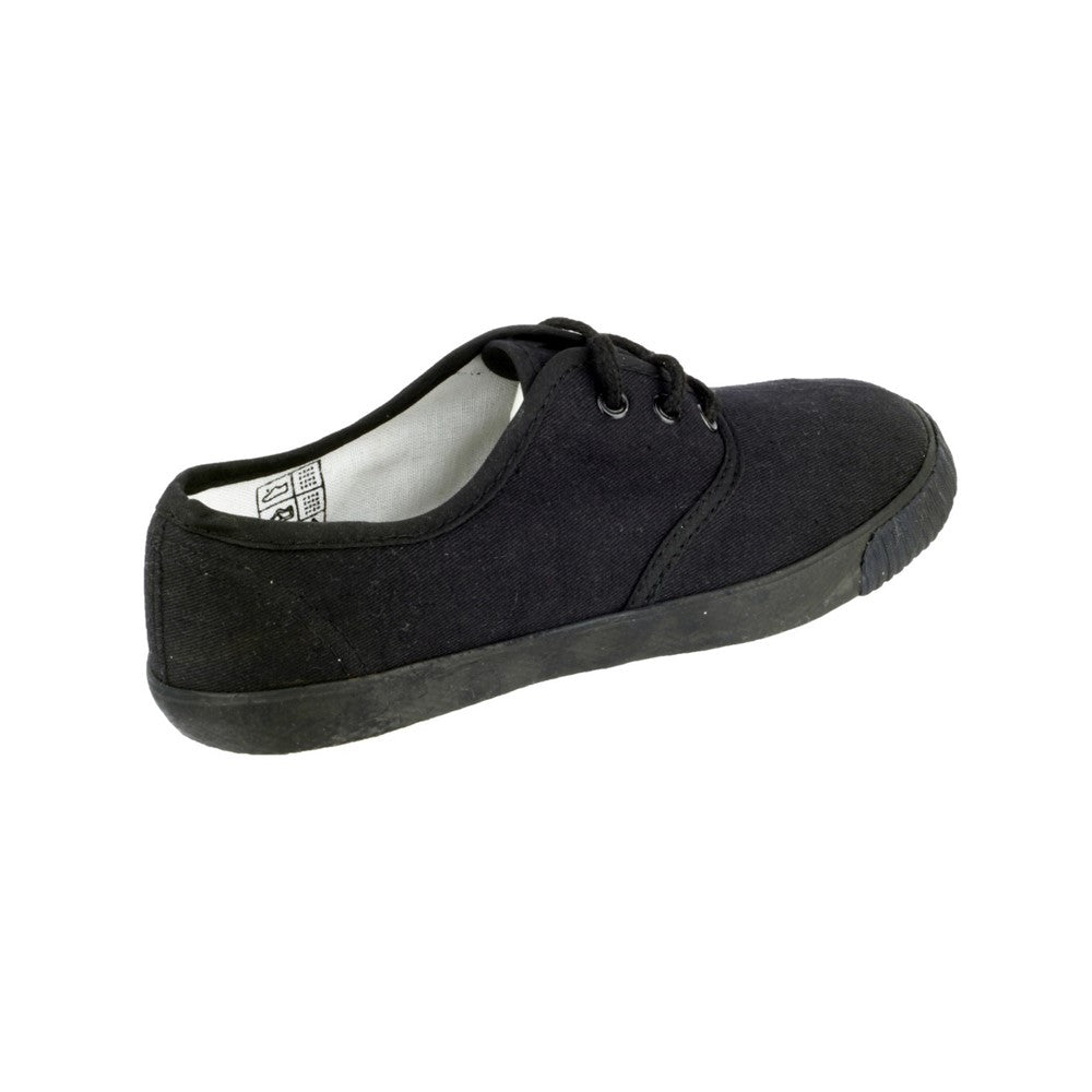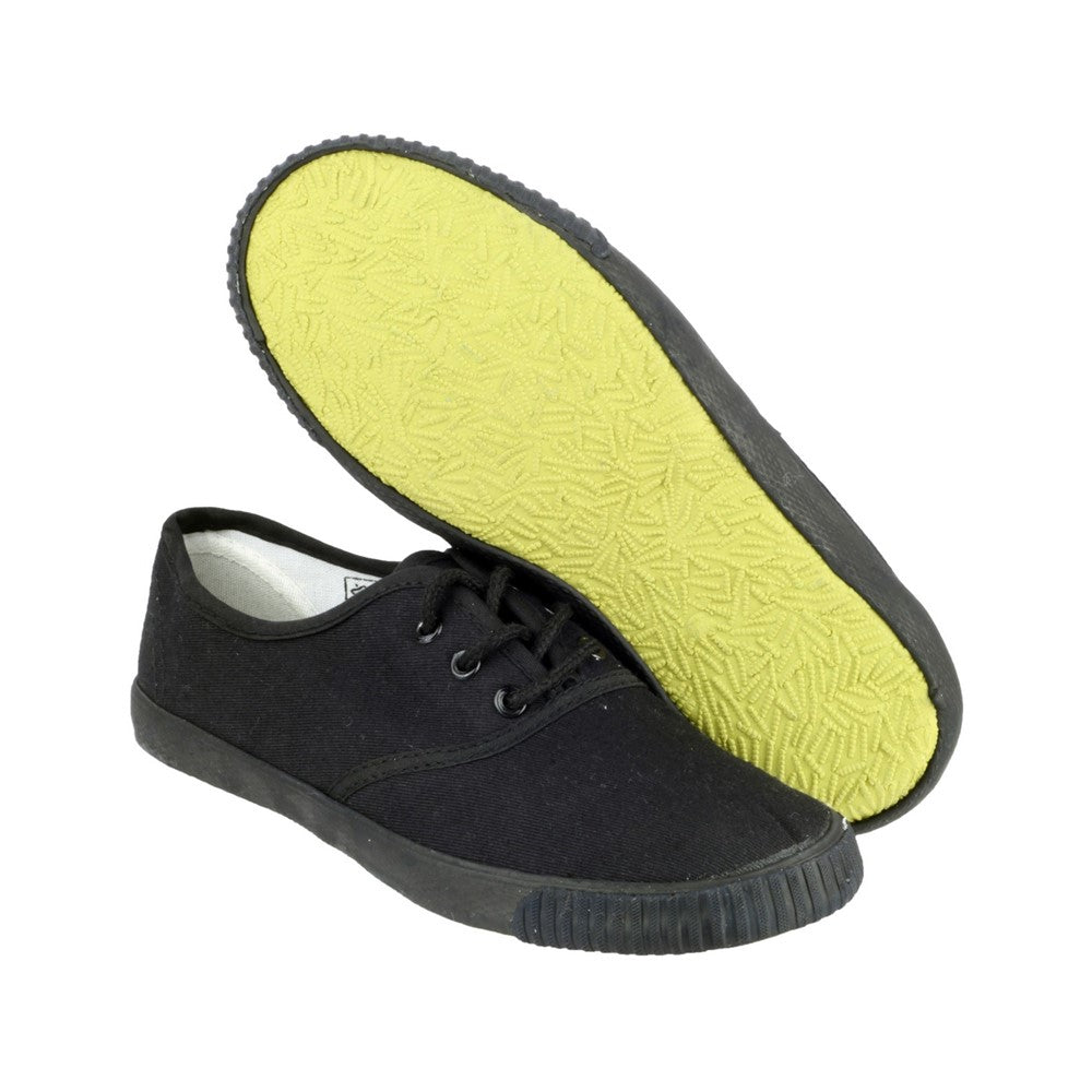 Great value children's plimsoll with traditional canvas uppers and non-marking rubber outsole. Securely fitted with adjustable lace up front and cord lacing. The ideal school shoes for PE and indoor gym halls.