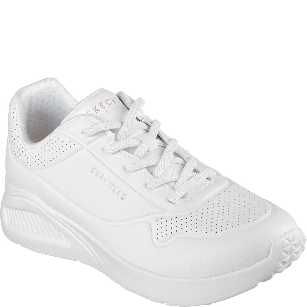 Level up your sneaker game with cushioned comfort wearing Skechers Street Uno Lite Work. This stretch-laced fashion sneaker features a synthetic duraleather upper with a platform wedge cushioned midsole and a Die-Cut Skechers Memory Foam insole.